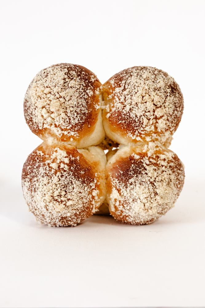 Skład: mąka pszenna 5000, mleko, masło (mleko), cukier, jaja, drożdże, sól, (kruszonka – masło, mąka pszenna 500, cukier, pasta waniliowa)